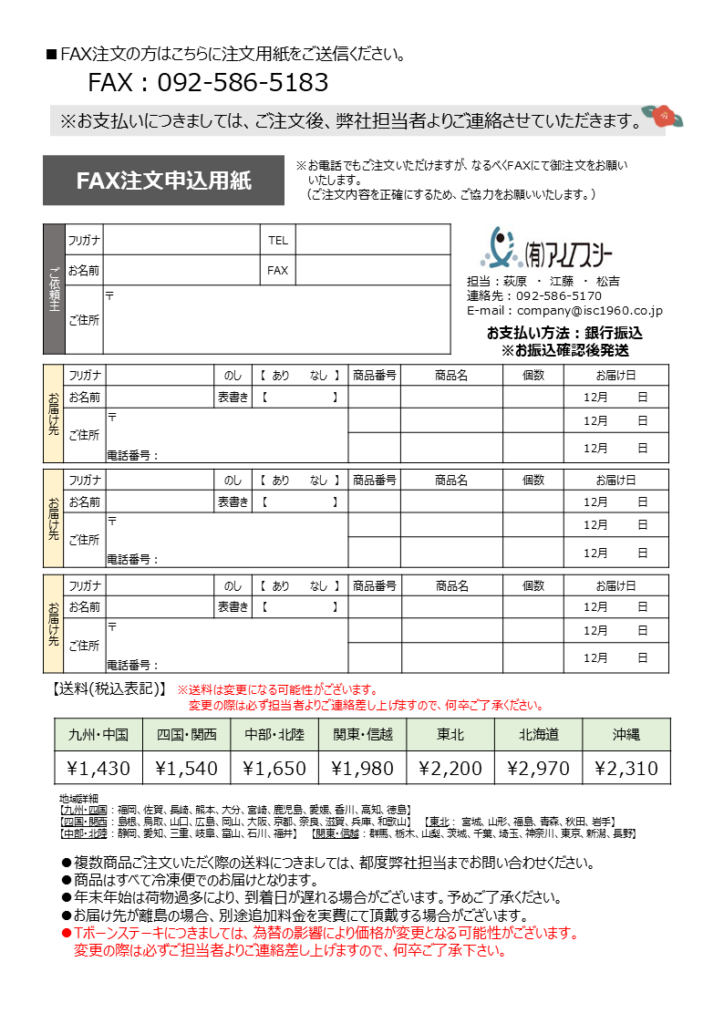 当ご注文ページから送信された内容は弊社にて仮注文として承ります。