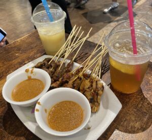 炭火で焼いた鶏や牛、ラムなどの串に、甘辛いピーナッツソースをたっぷりつけて食べるのが本場スタイルで、 このソースがとにかくおいしい…!香ばしさとコクが一気に押し寄せてきます。